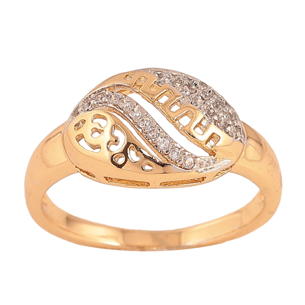 Каблучка Xuping колір Позолота 18K+Родій "Овальний купол з різьбленим візерунком та інкрустацією кристалами"