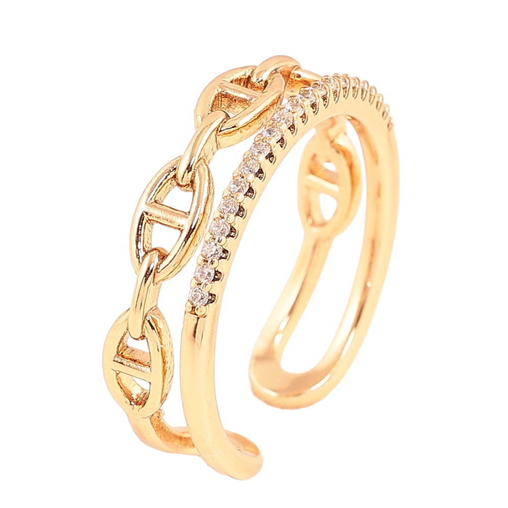 Каблучка Xuping колір позолота 18K візерунок ланцюжок з кришталевою доріжкою