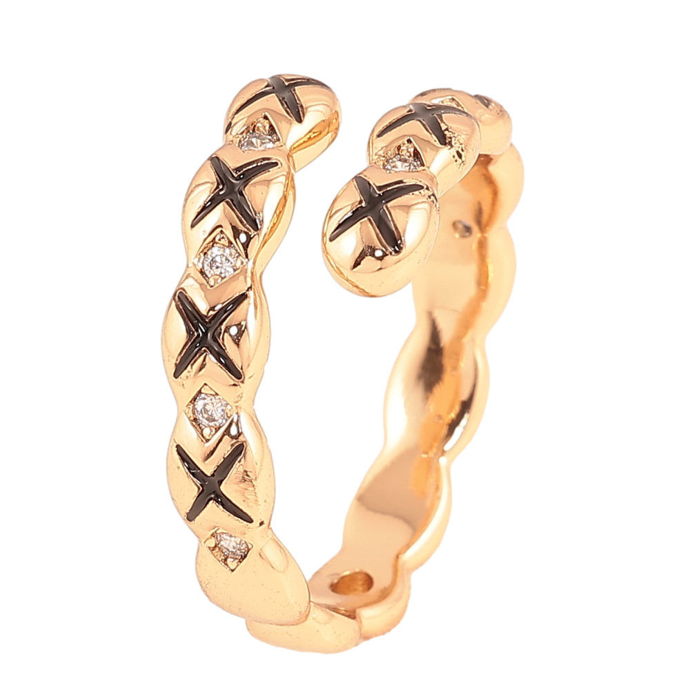 Каблучка Xuping колір Позолота 18K "Візерунок з кристалами і чорною емаллю"