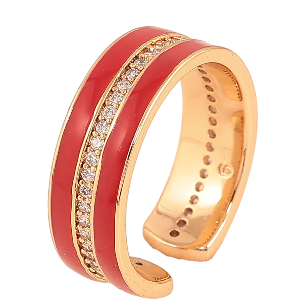 Каблучка Xuping колір Позолота 18K "Візерунок з кристалами та червоною эмаллю" шир. 6мм