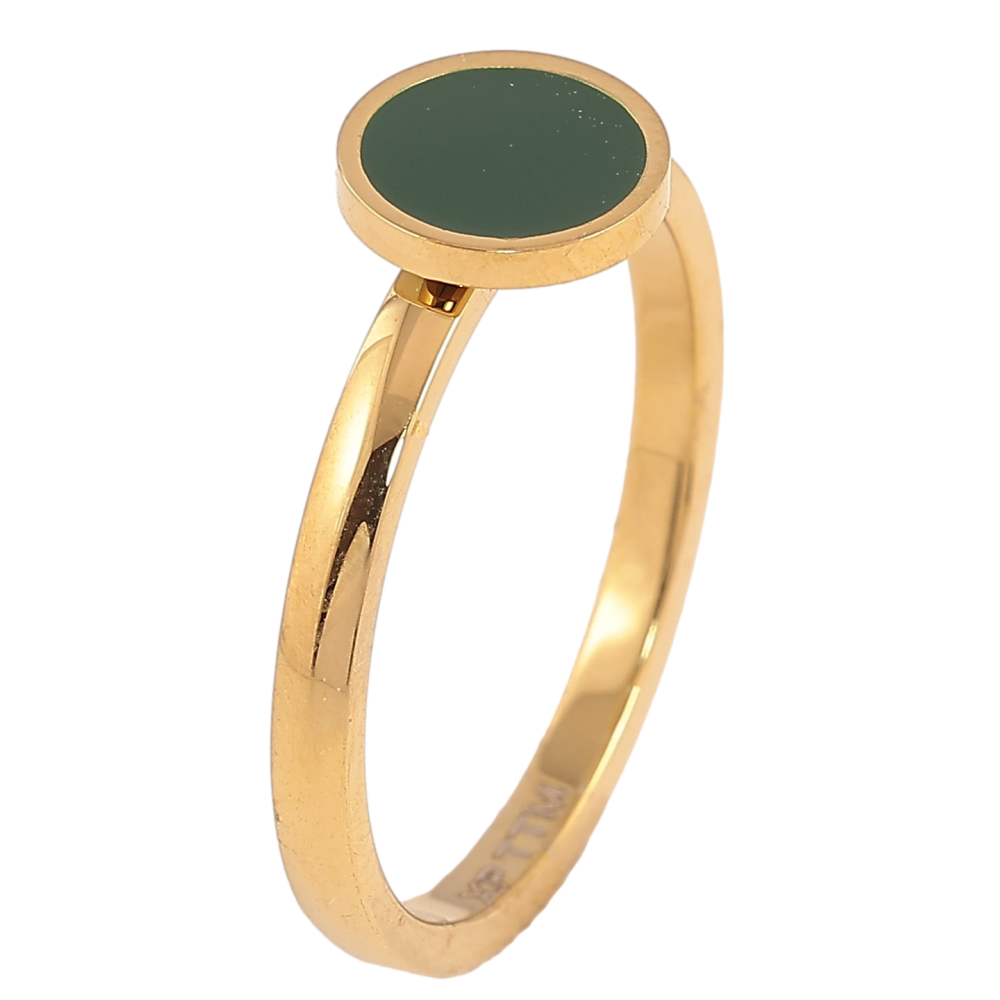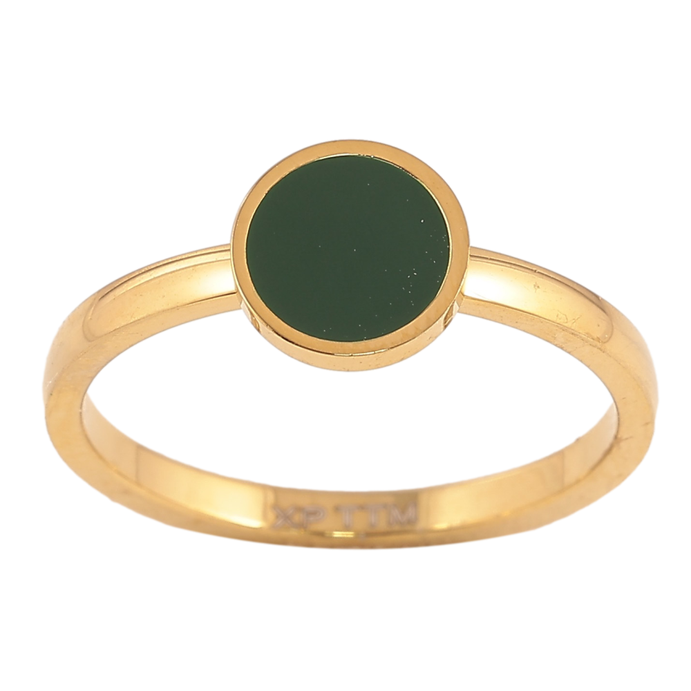 Каблучка Xuping TTM Stainless Steel колір 14К "Коло з зеленою емаллю"