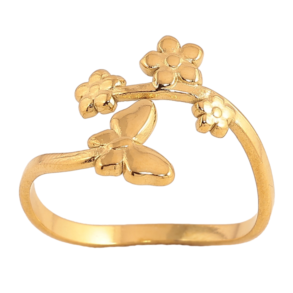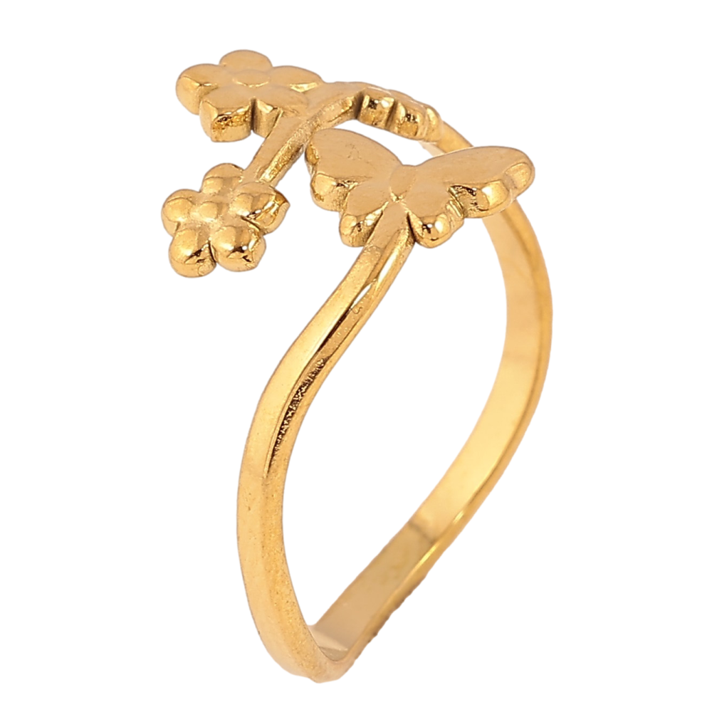 Каблучка Xuping TTM Stainless Steel колір 14К "Квіткова гілочка з метеликом"