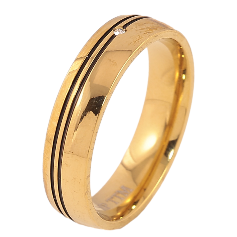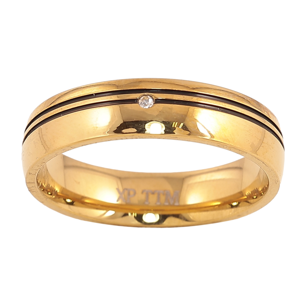 Каблучка Xuping TTM Stainless Steel колір 14К "Візерунок чорною емаллю і кристалом" шир. 5мм
