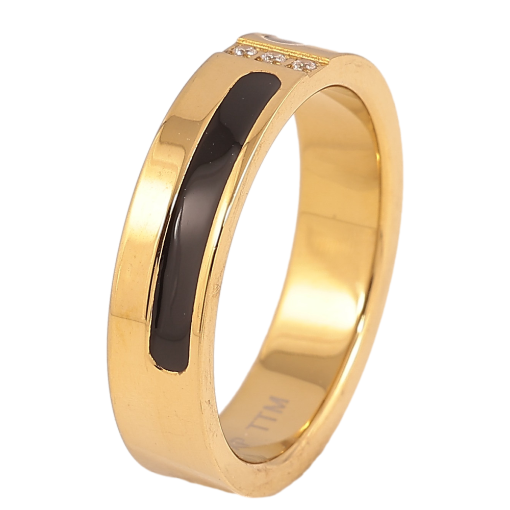 Каблучка Xuping TTM Stainless Steel колір 14К "Візерунок чорною емаллю з кристалами", шир. 5мм