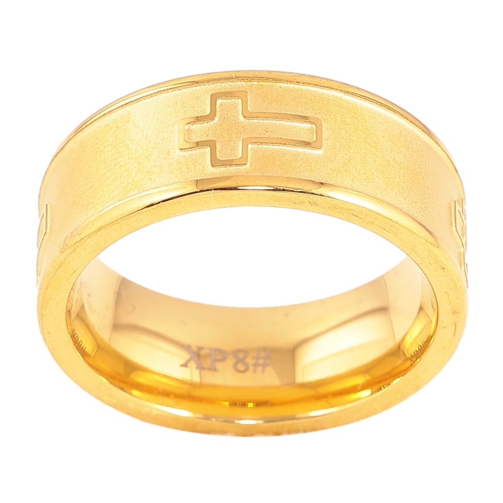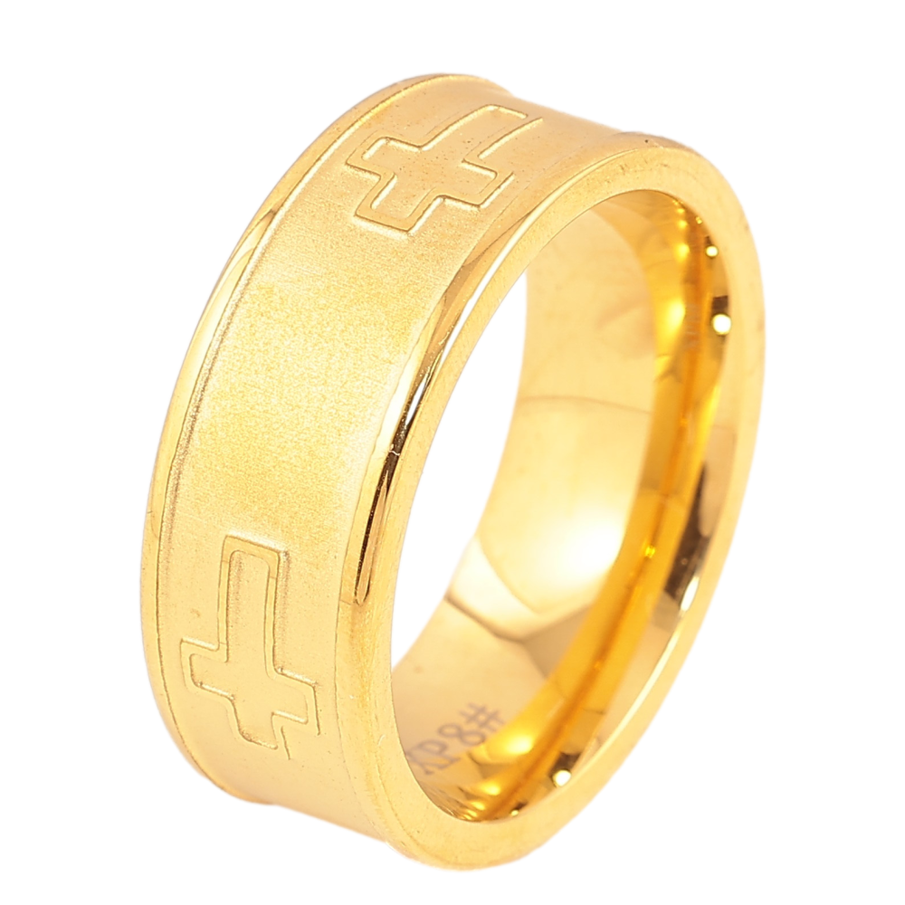 Каблучка Xuping TTM Stainless Steel колір 14К "Візерунок хрестик" шир. 8мм