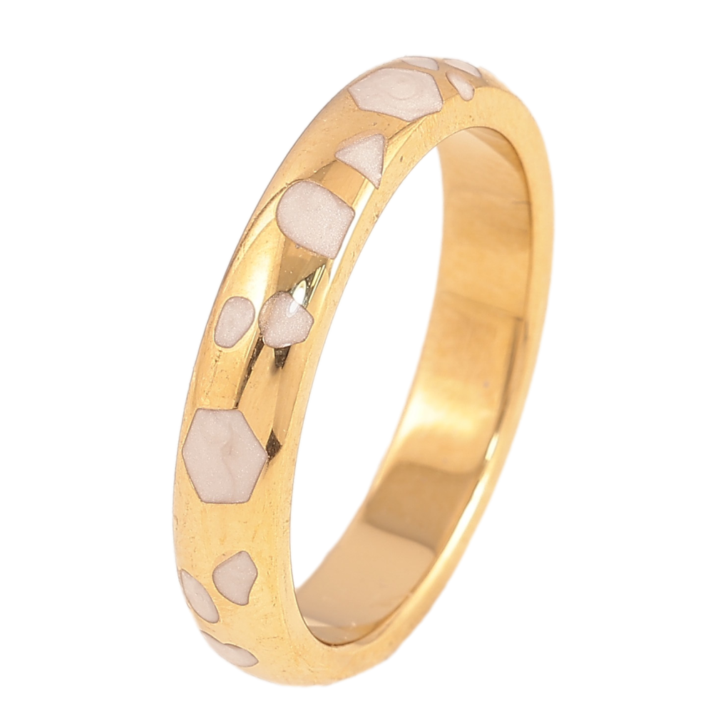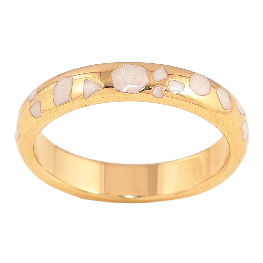 Каблучка Xuping TTM Stainless Steel колір 14К "Візерунок з білою перламутровою емаллю" шир. 4мм