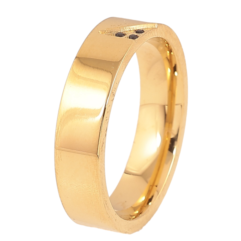 Каблучка Xuping TTM Stainless Steel колір 14К "Візерунок з чорними кристалами" шир. 5мм