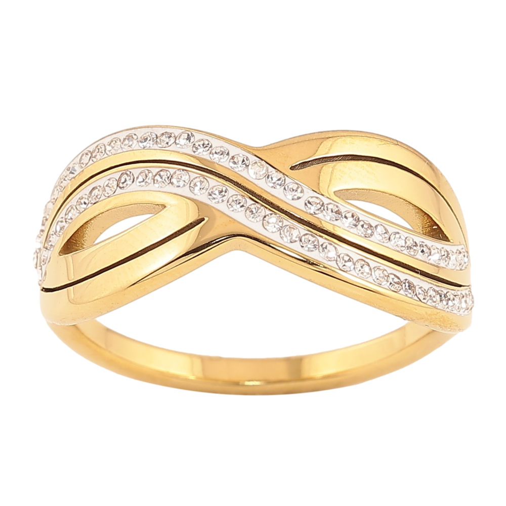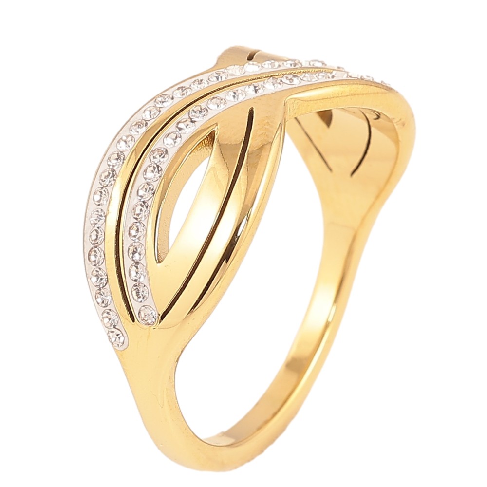 Каблучка Xuping TTM Stainless Steel колір 14К "Візерунок з кристалами"