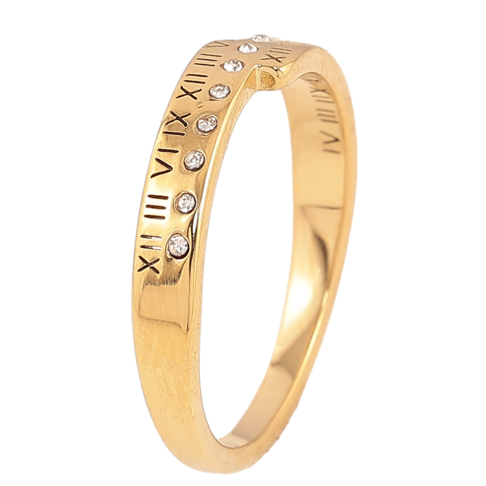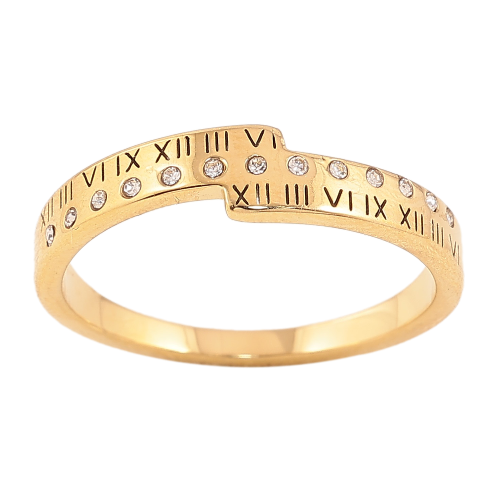 Каблучка Xuping TTM Stainless Steel колір 14К "Візерунок з кристалами і римськими цифрами"
