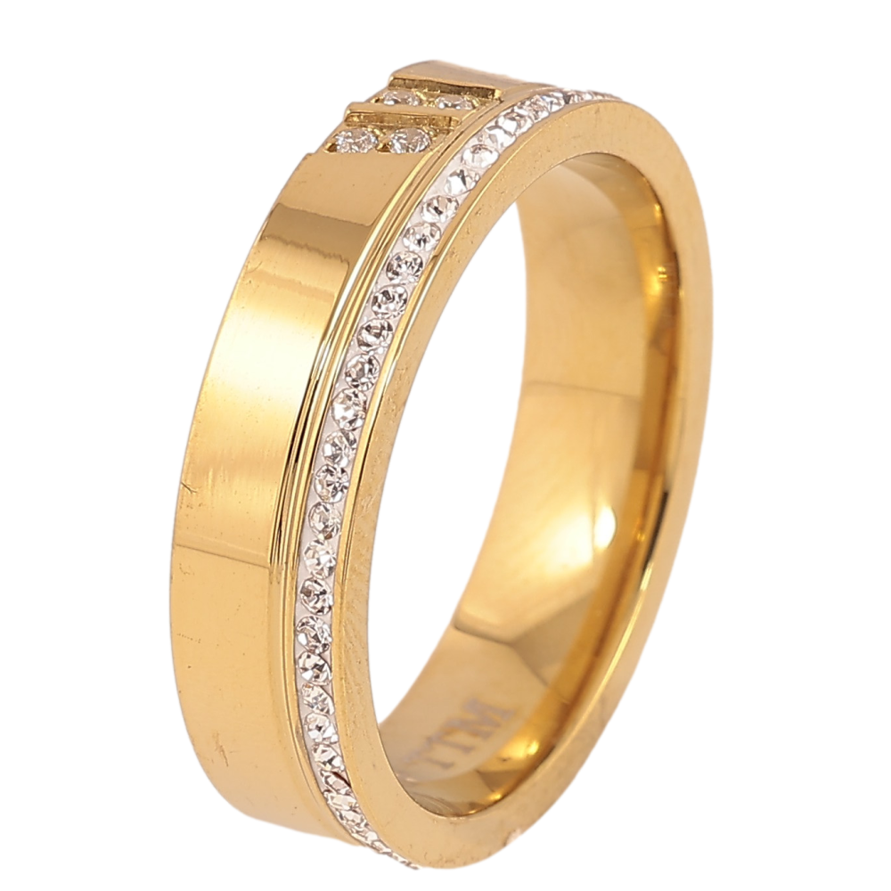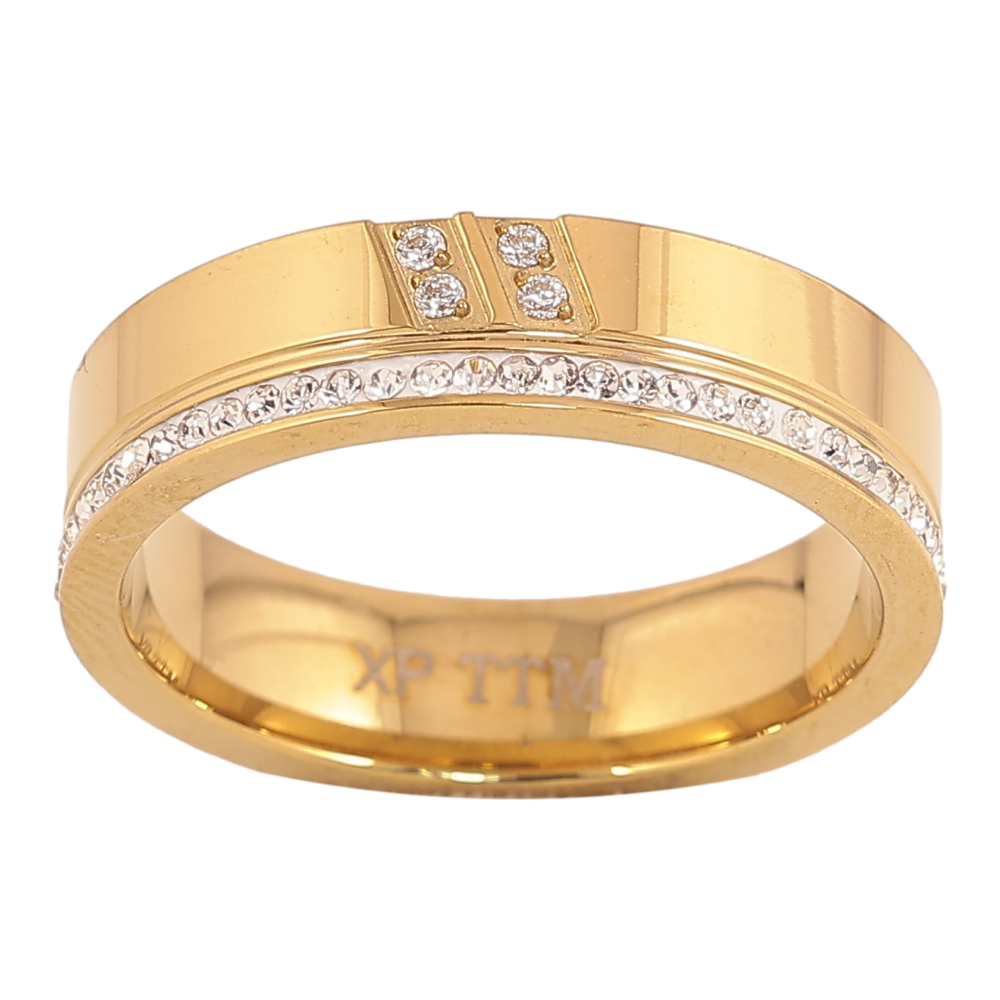 Каблучка Xuping TTM Stainless Steel колір 14К "Візерунок з кристалами" шир. 5мм фото №1