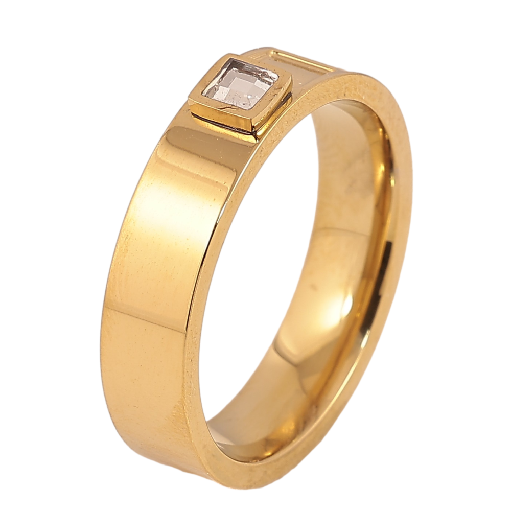 Каблучка Xuping TTM Stainless Steel колір 14К "Візерунок з кристалом" шир. 5мм