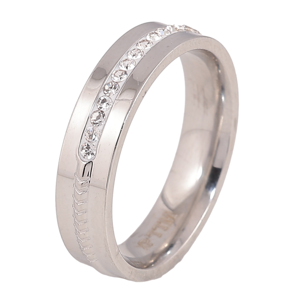 Каблучка Xuping TTM Stainless Steel колір Родій "Доріжка кристалів" шир. 5мм