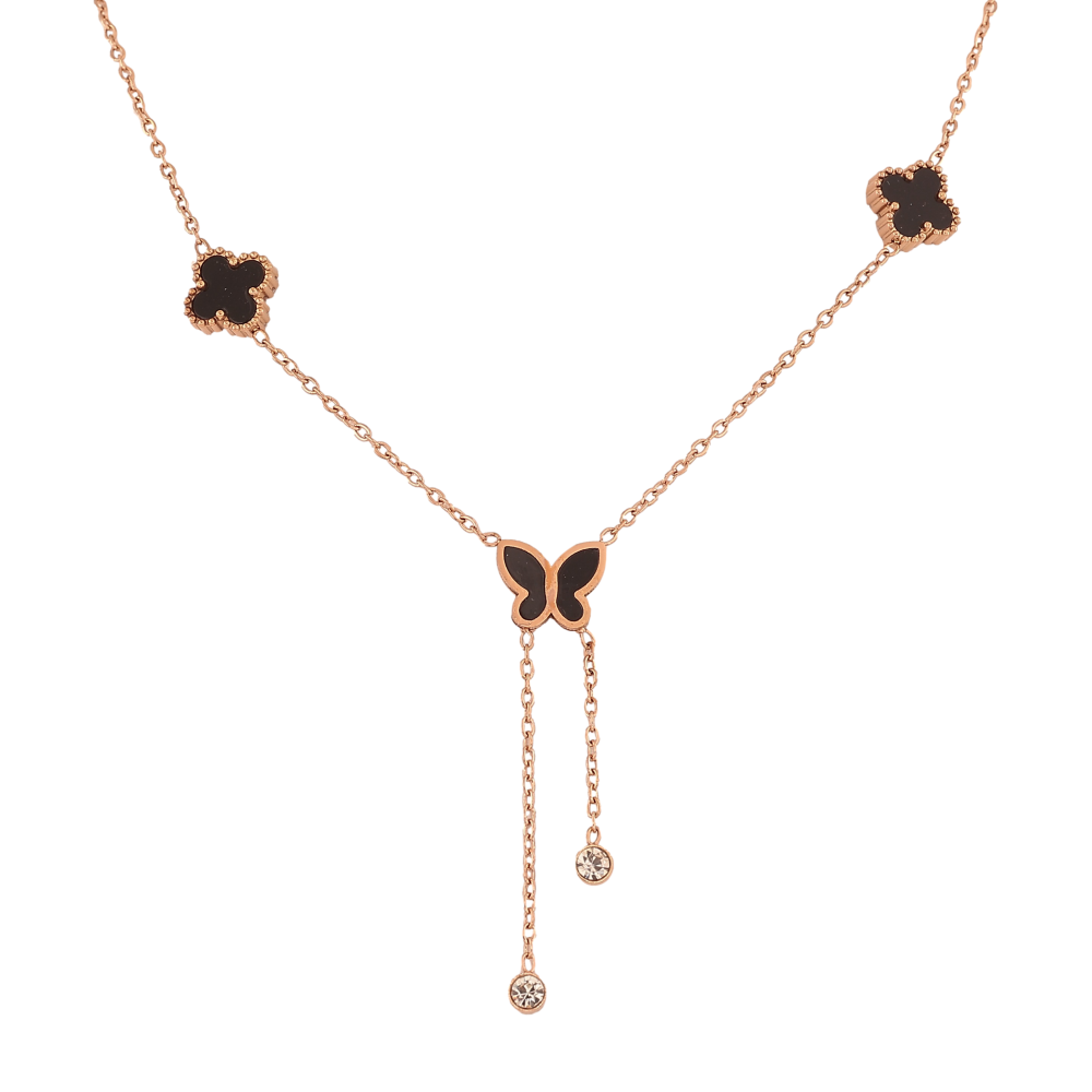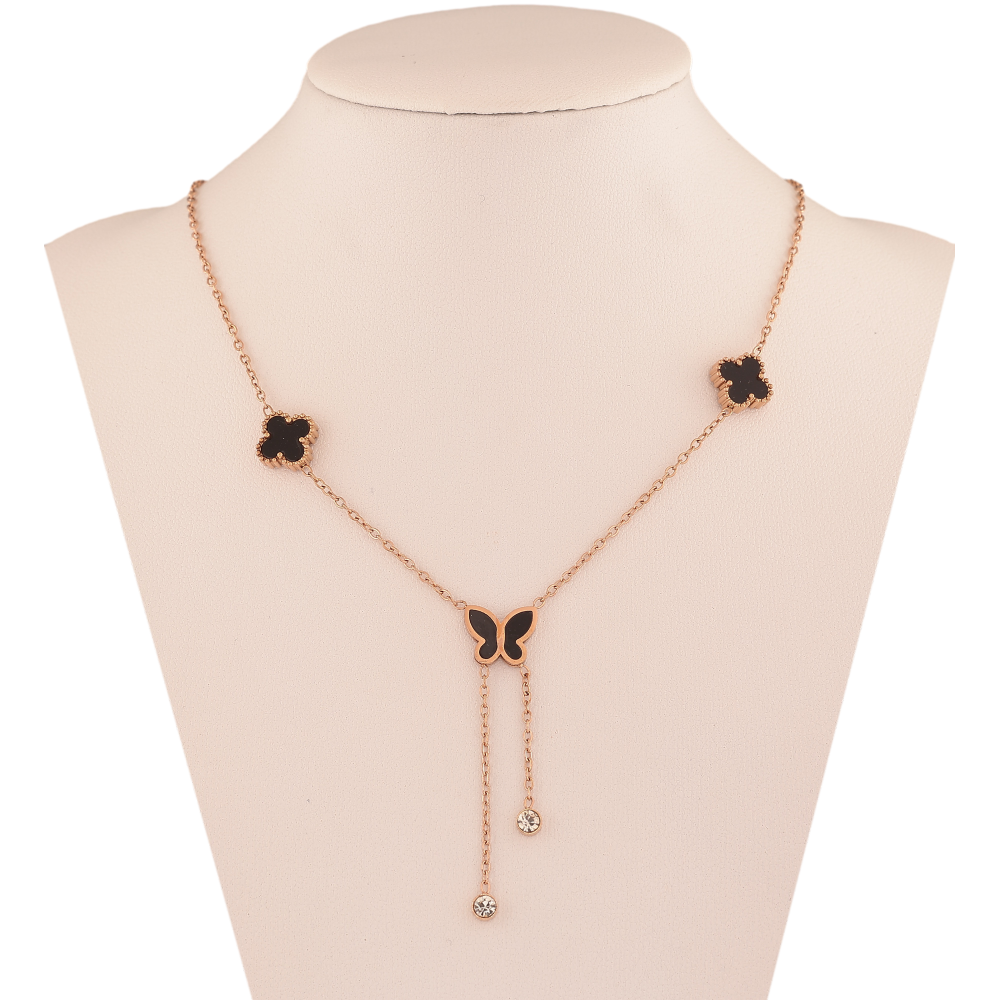Кольє Нержавіюча сталь "Конюшина з метеликом" довжина 42-46см х 1.5-9мм