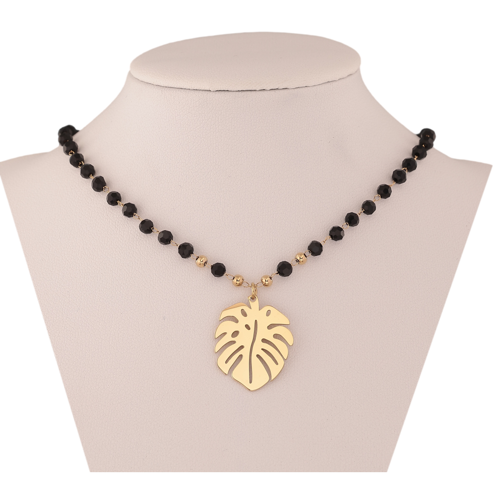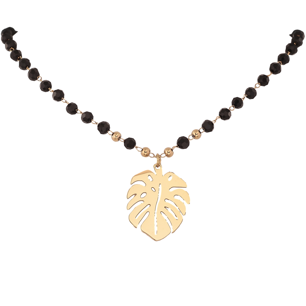 Кольє Xuping ТТМ Stainless Steel колір 14К "Чорне намисто з підвіскою листок" довжина 45-50см х 3-4мм