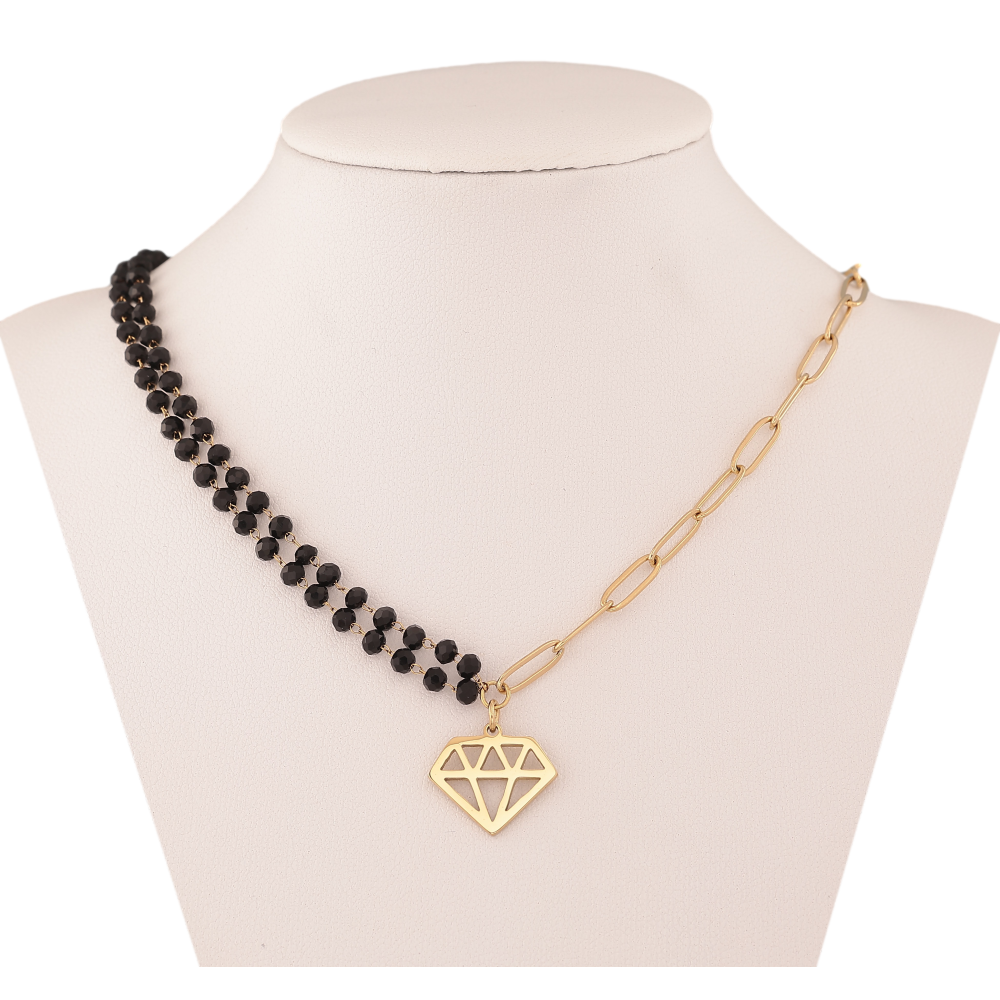 Кольє Xuping ТТМ Stainless Steel колір 14К "Чорні намистини з ланцюжком, підвіска кристал" довжина 45-49см х 4-6мм