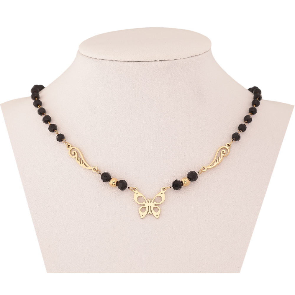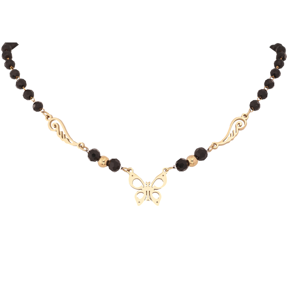 Кольє Xuping ТТМ Stainless Steel колір 14К "Чорні намистини з метеликом" довжина 44-49см х 4-5мм