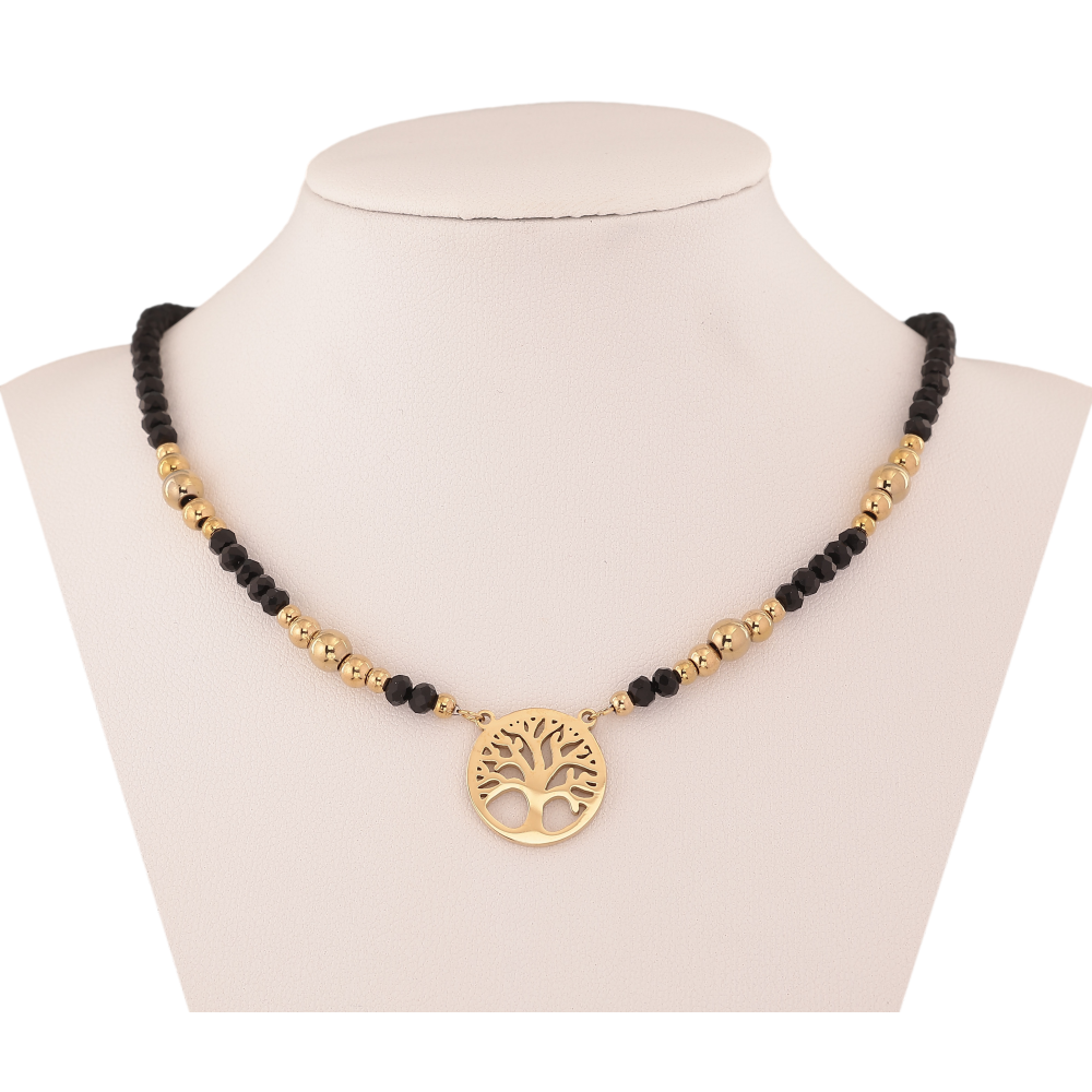 Кольє Xuping ТТМ Stainless Steel колір 14К "Чорно-золотисті намистини та підвіска дерево життя" довжина 45-50см х 3-5мм