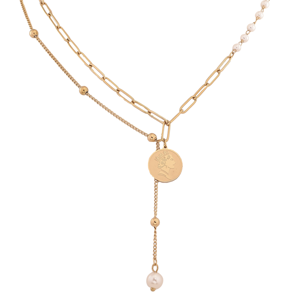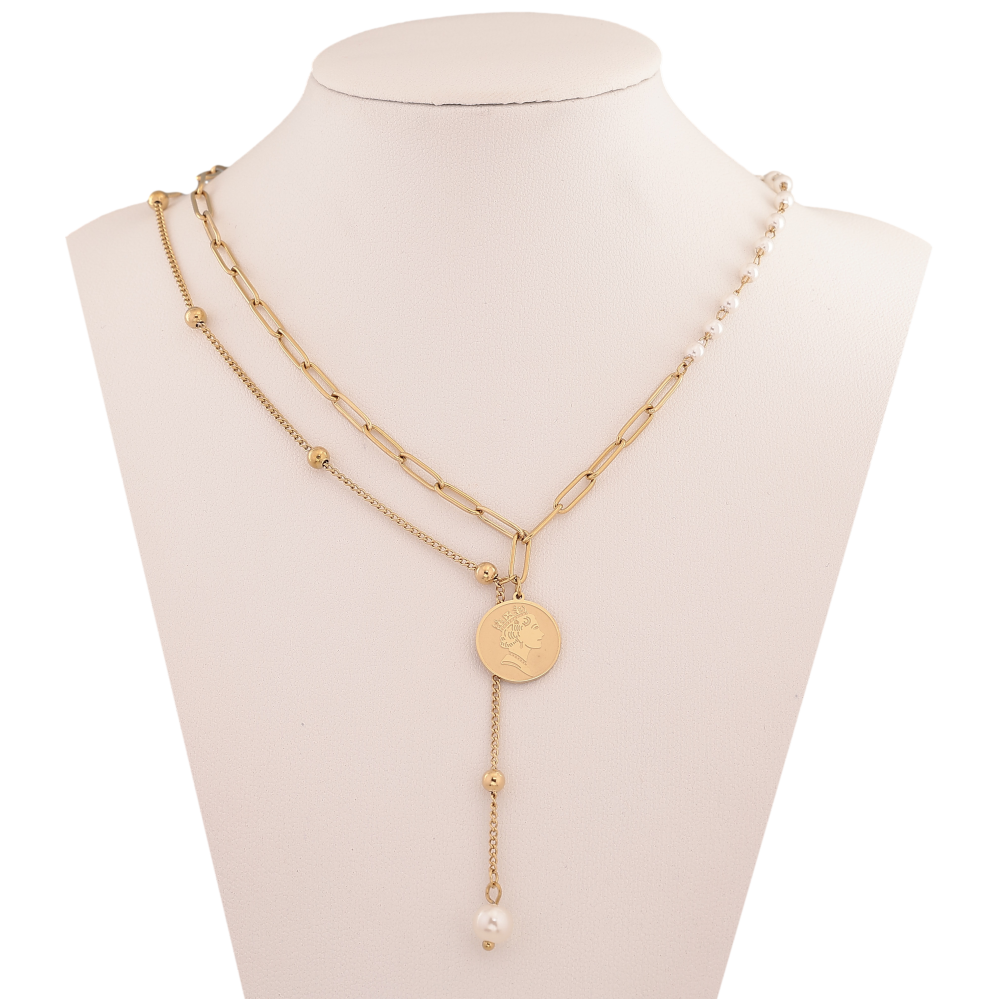 Кольє Xuping ТТМ Stainless Steel колір 14К "Ланцюжки з перлинними підвісками" довжина 43-48см х 1-3мм