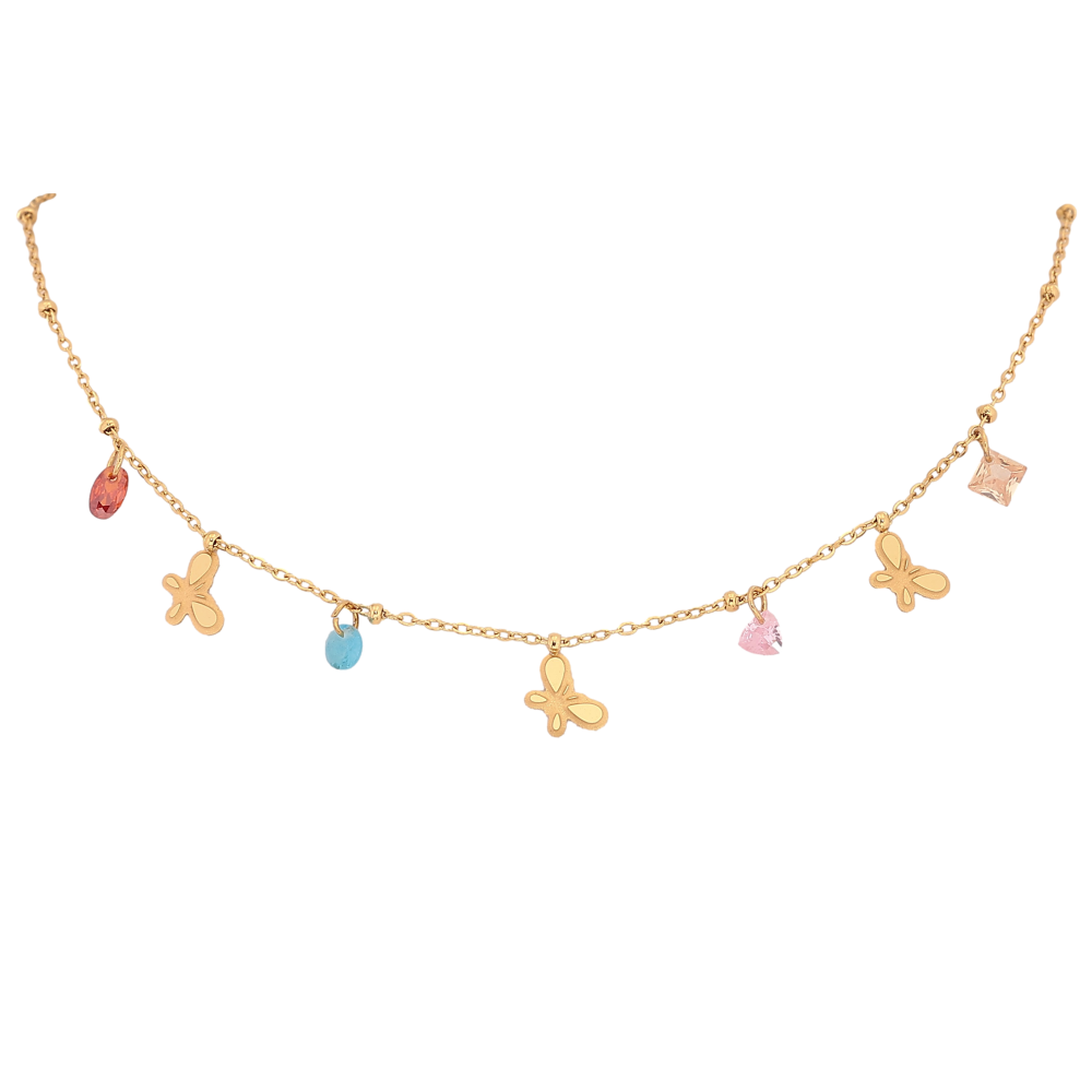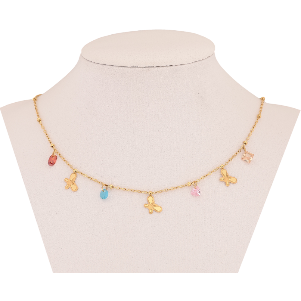 Кольє Xuping ТТМ Stainless Steel колір 14К "Метелики з кольоровими кристалами" довжина 40-45см х 1-2мм