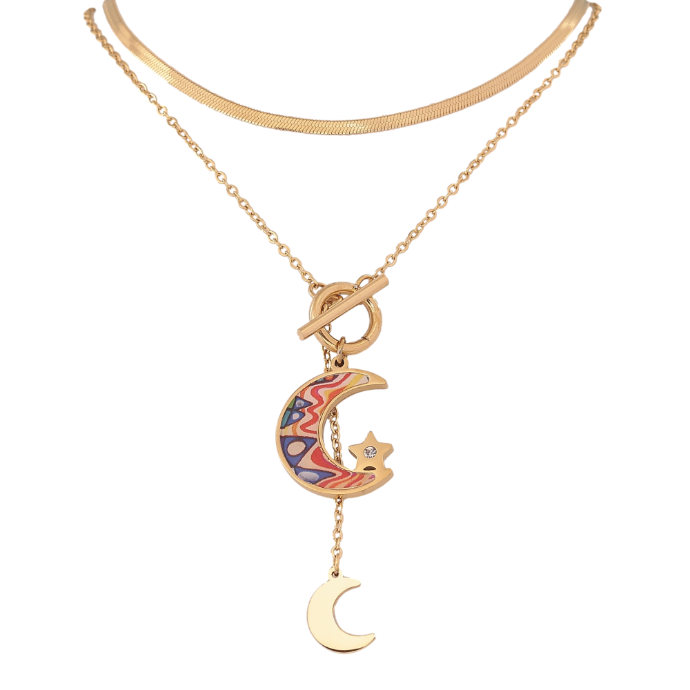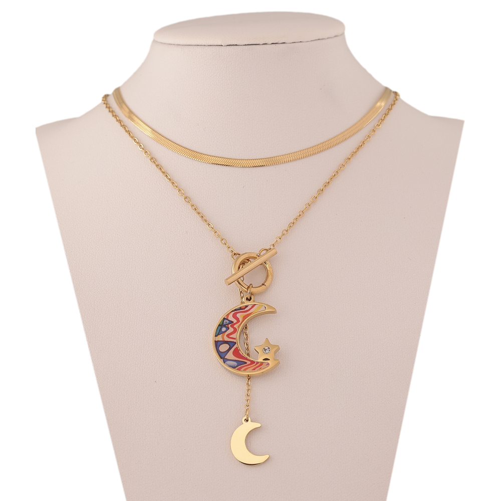 Кольє Xuping ТТМ Stainless Steel колір 14К "Подвійний ланцюжок з підвісками" довжина 41-46см х 1.5-2мм