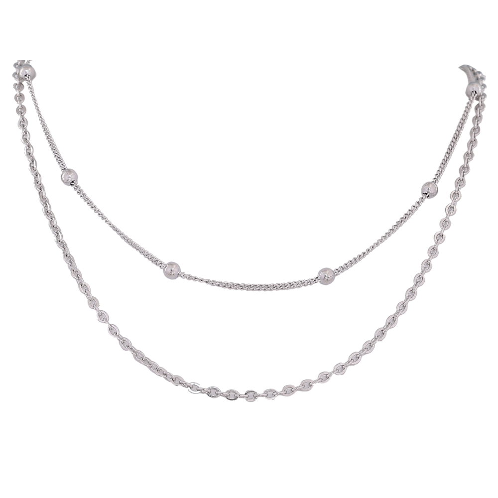 Кольє Xuping ТТМ Stainless Steel колір Родій "Подвійний ланцюжок з намистинами" довжина 41-46см х 1.5-4мм