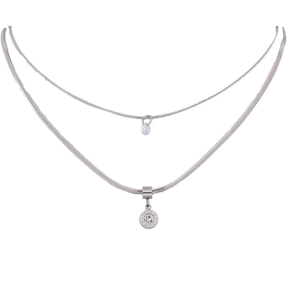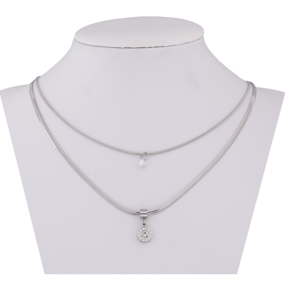 Кольє Xuping ТТМ Stainless Steel колір Родій "Подвійний ланцюжок з циферблатом і кристалом" довжина 41-46см х 3мм