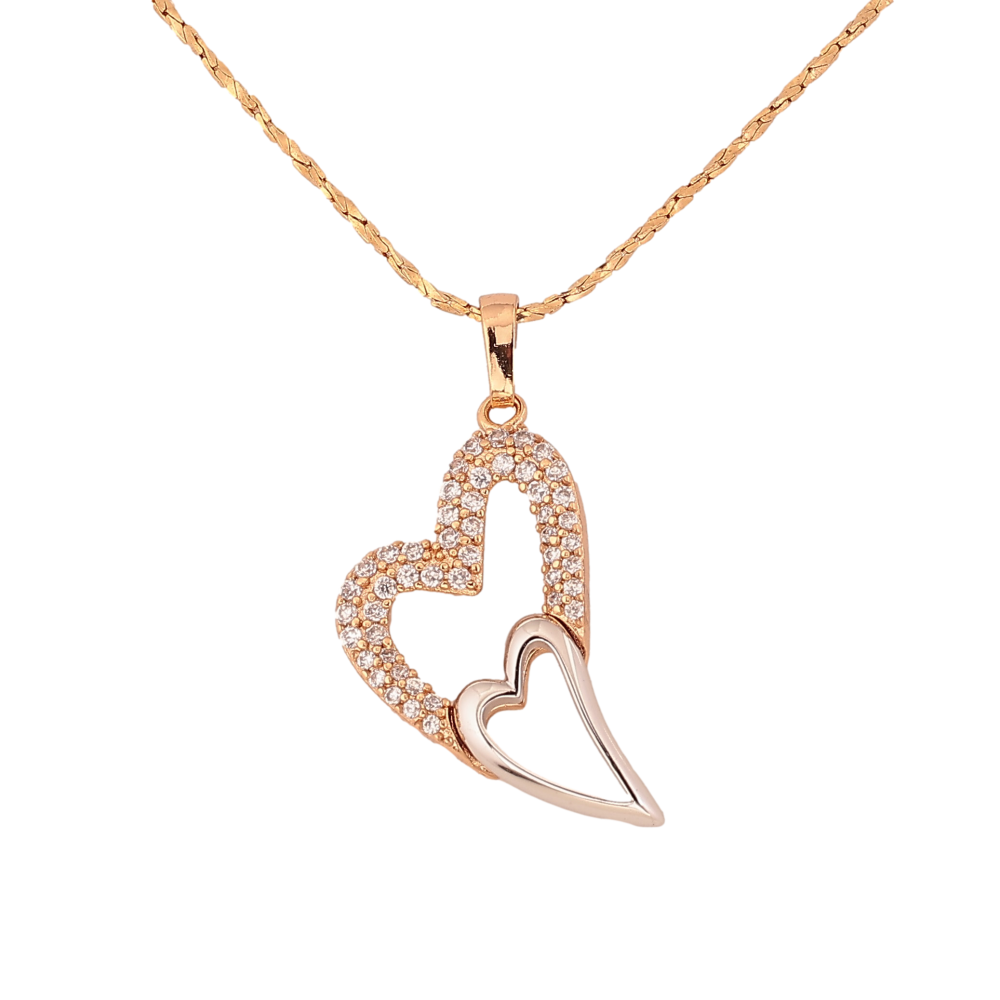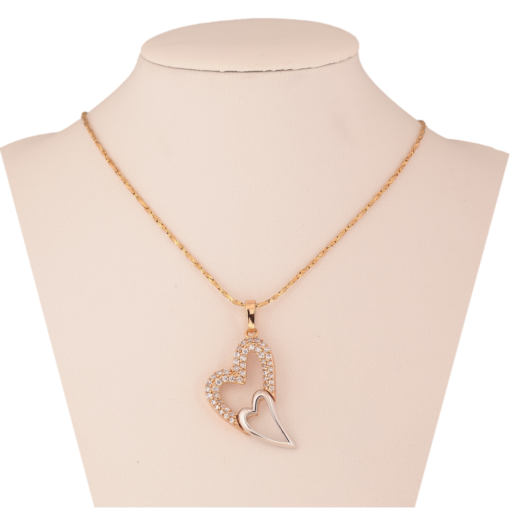 Кулон на ланцюжку Xuping колір Позолота 18К + Родій "Сердечки з кристалами" довжина 45-50см х 1мм