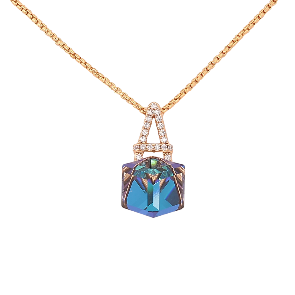 Кулон Xuping колір 18K з кр-ми Swarovski на ланцюжку "Літера А з кристальним кубом Metallic Blue" довжина 40-45см х 1мм