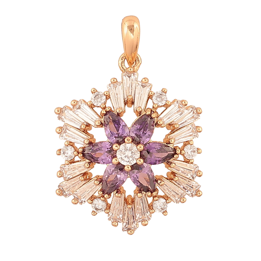 Кулон Xuping колір Позолота 18К "Сніжинка з бузковими кристалами" для ланцюжка до 2мм