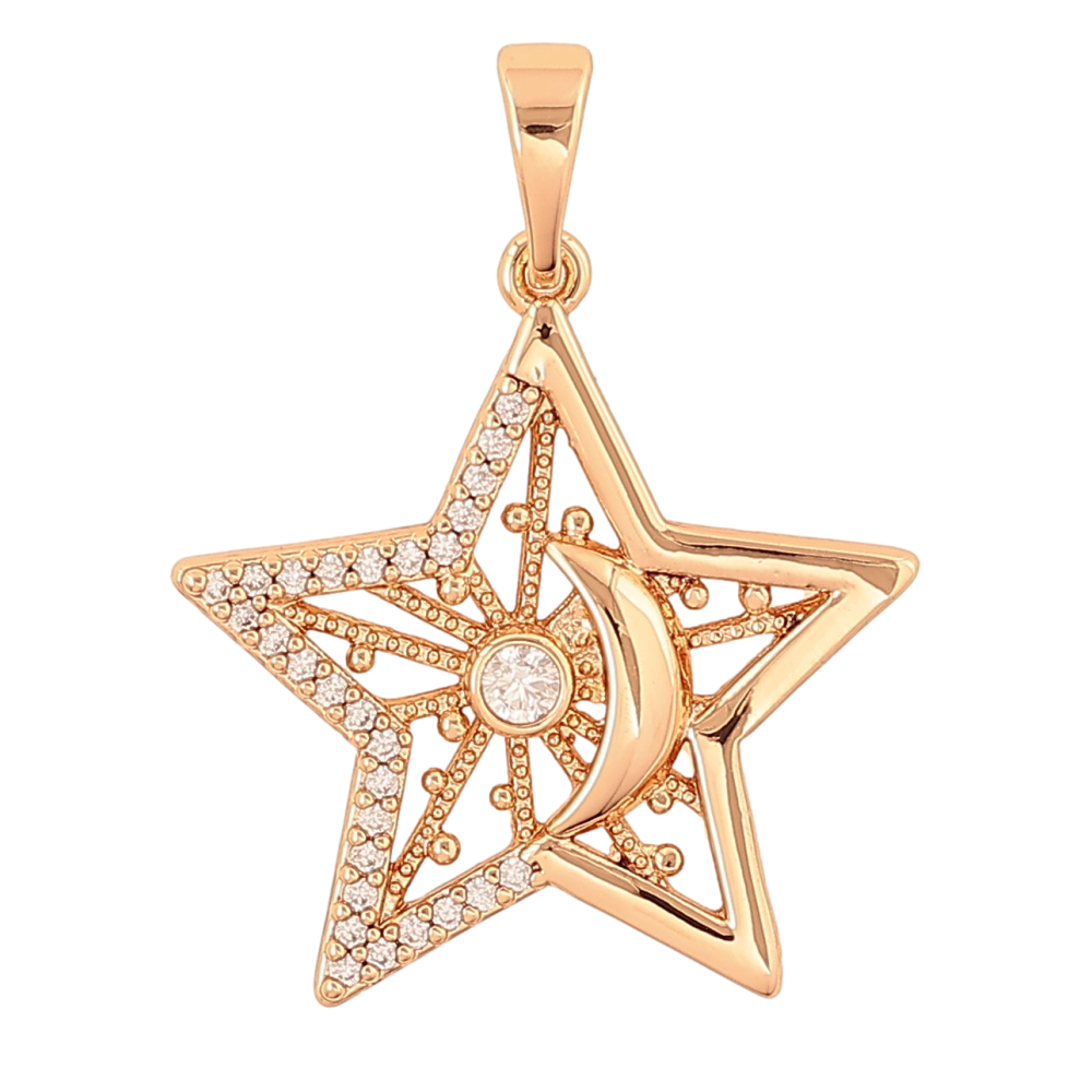 Кулон Xuping колір Позолота 18K "Зірка з місяцем та кристаллами" для ланцюжка до 5мм