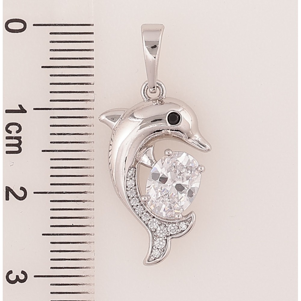 Кулон Xuping колір Родій "Дельфін з кристалом" для ланцюжка до 6мм