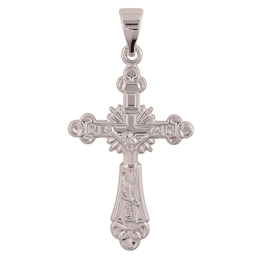 Кулон Xuping колір Родій "Хрест з Розп'яттям та написом Врятуй та Збережи" для ланцюжка до 7мм