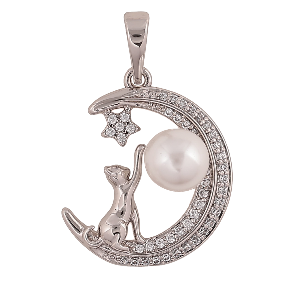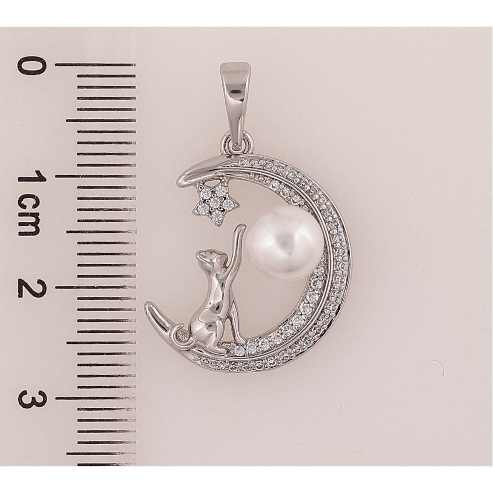 Кулон Xuping колір Родій "Котик в півмісяці" для ланцюжка до 6мм