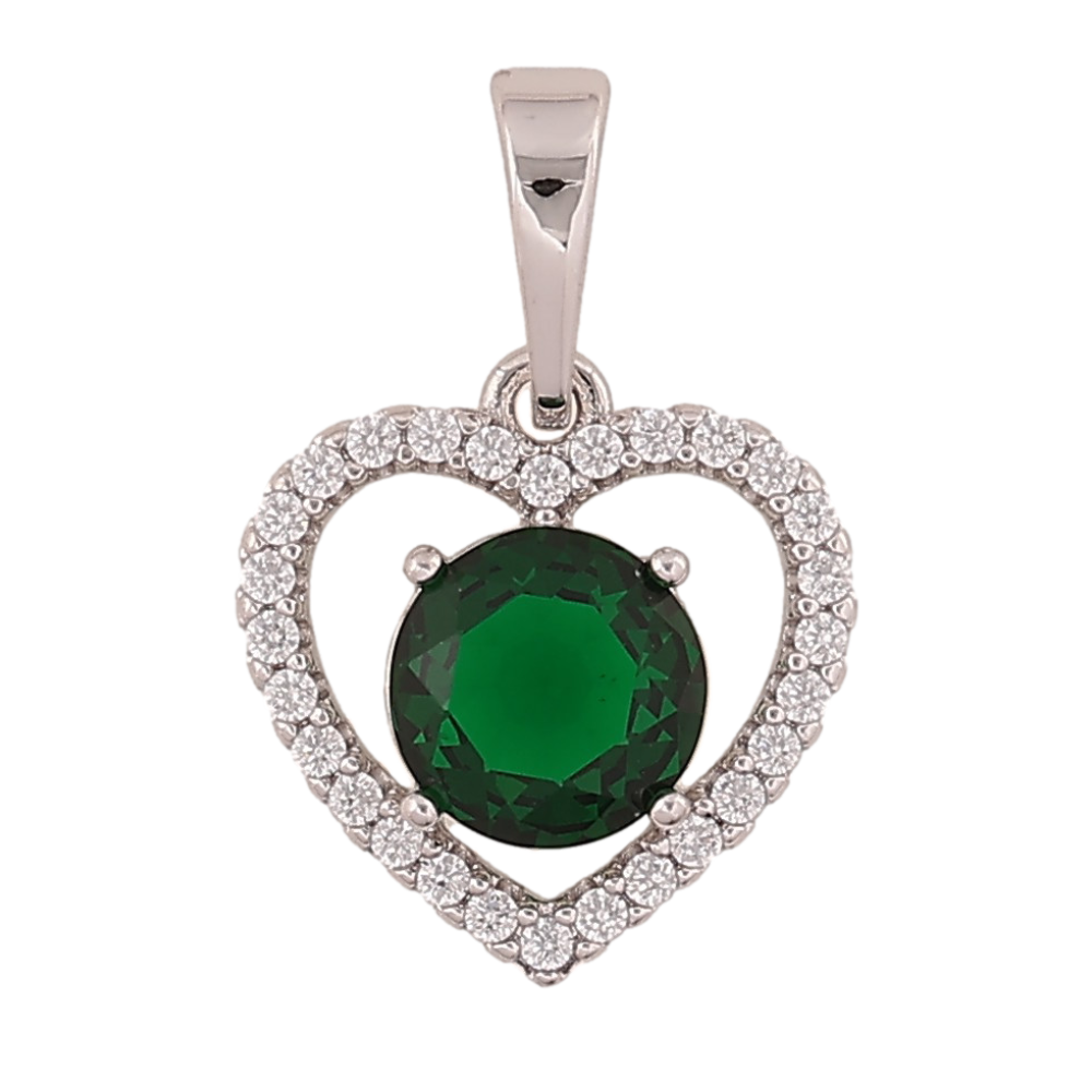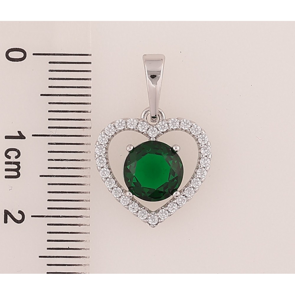 Кулон Xuping колір Родій "Серце з зеленим кристалом" для ланцюжка до 6мм