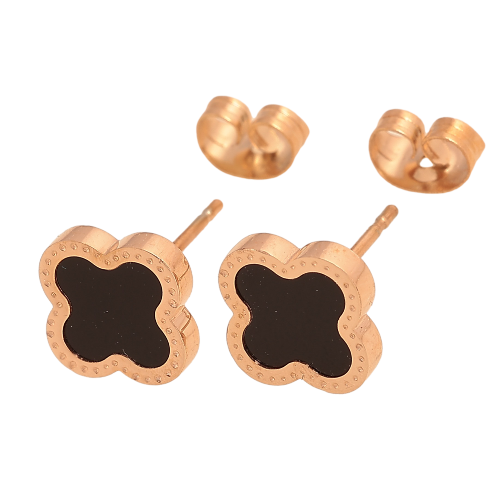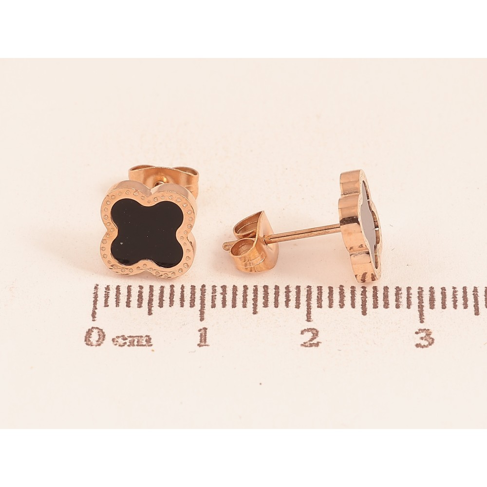Набір Сережки Нержавіюча сталь пусети "Конюшина з чорними вставками" 9х9мм
