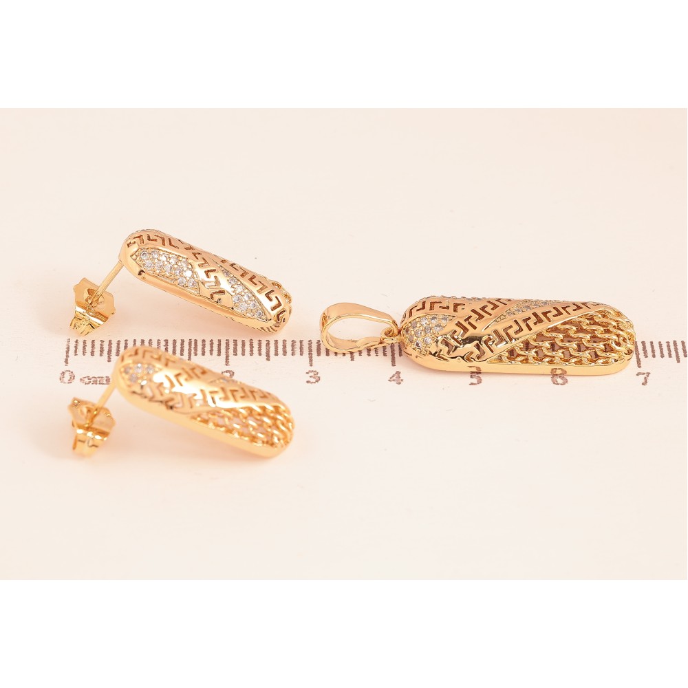 Набір Xuping колір Позолота 18K Кулон сережки "Декоративний комбінований орнамент з дрібними кристалами"