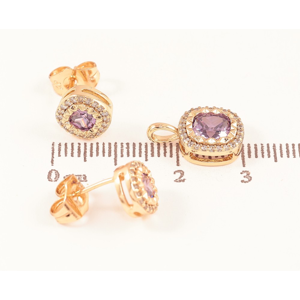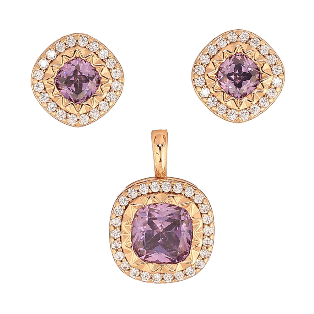 Набір Xuping колір Позолота 18K сережки кулон "Інкрустація з бузковими кристалами"
