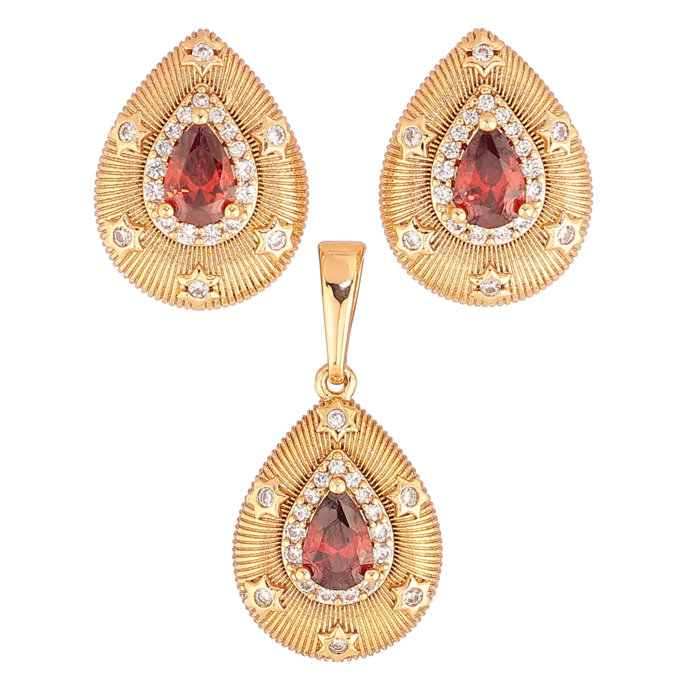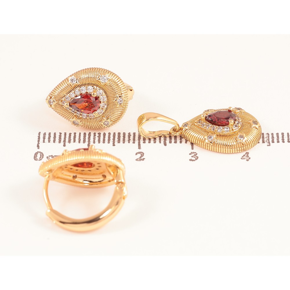 Набір Xuping колір Позолота 18K сережки кулон "Крапельки з візерунком та червоними кристалами"