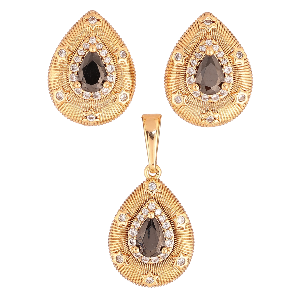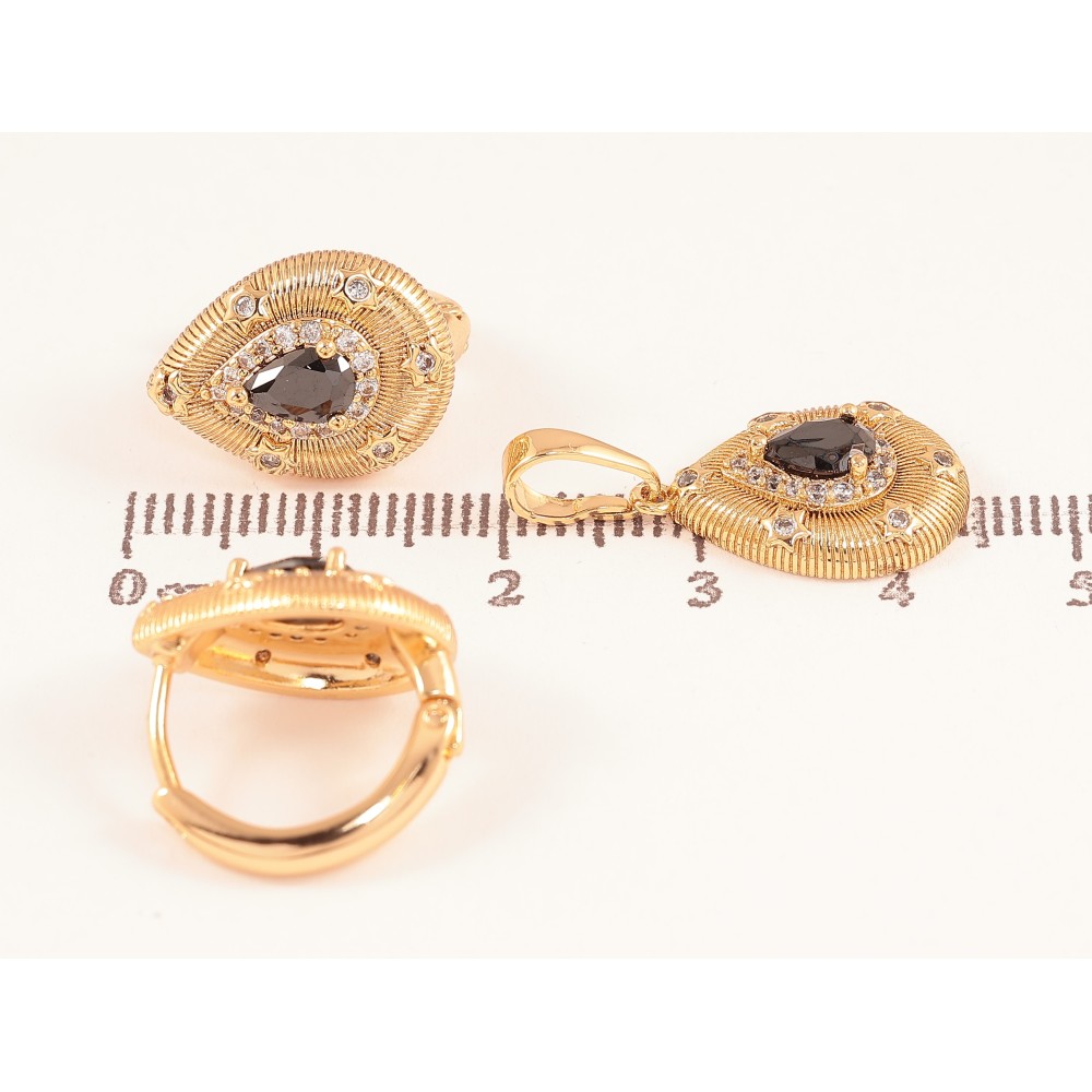 Набір Xuping колір Позолота 18K сережки кулон "Крапельки з візерунком та чорними кристалами"