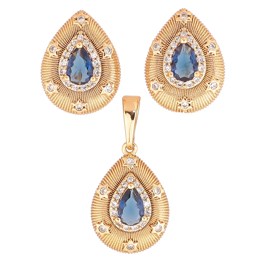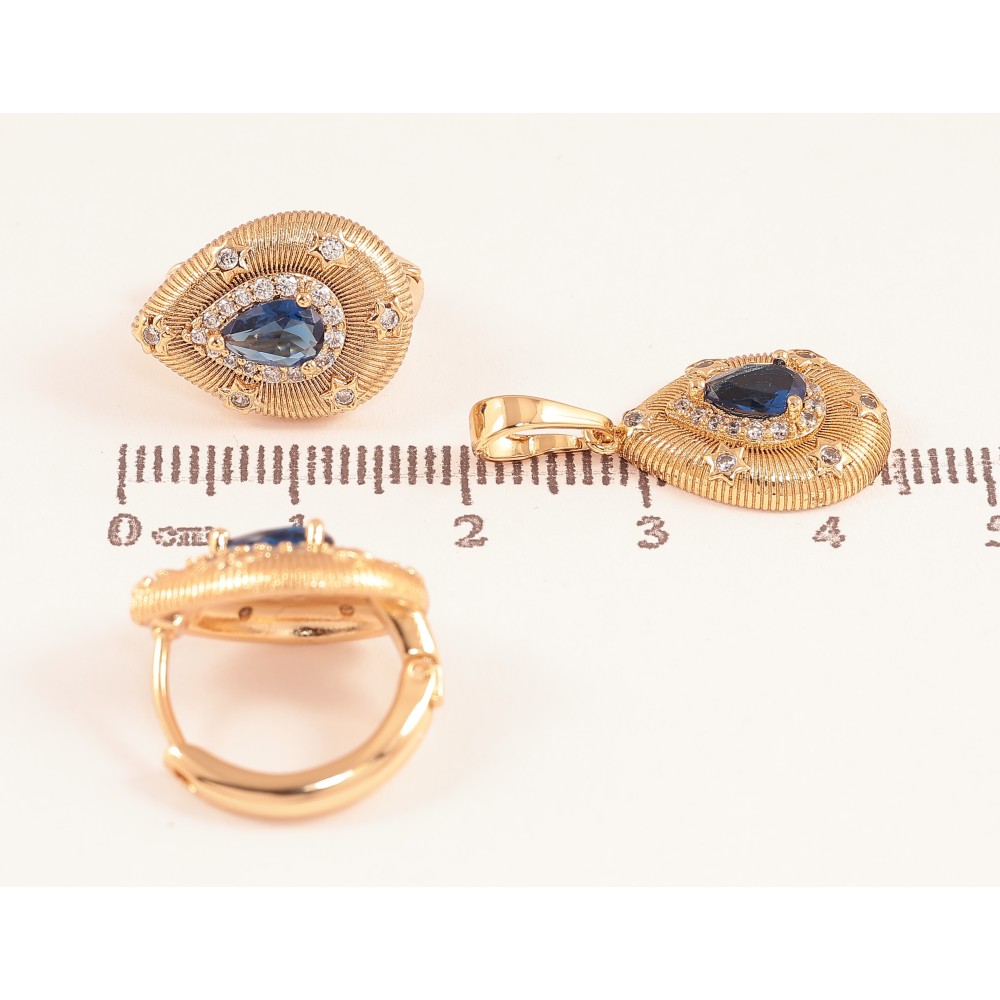 Набір Xuping колір Позолота 18K сережки кулон "Крапельки з візерунком та синіми кристалами"