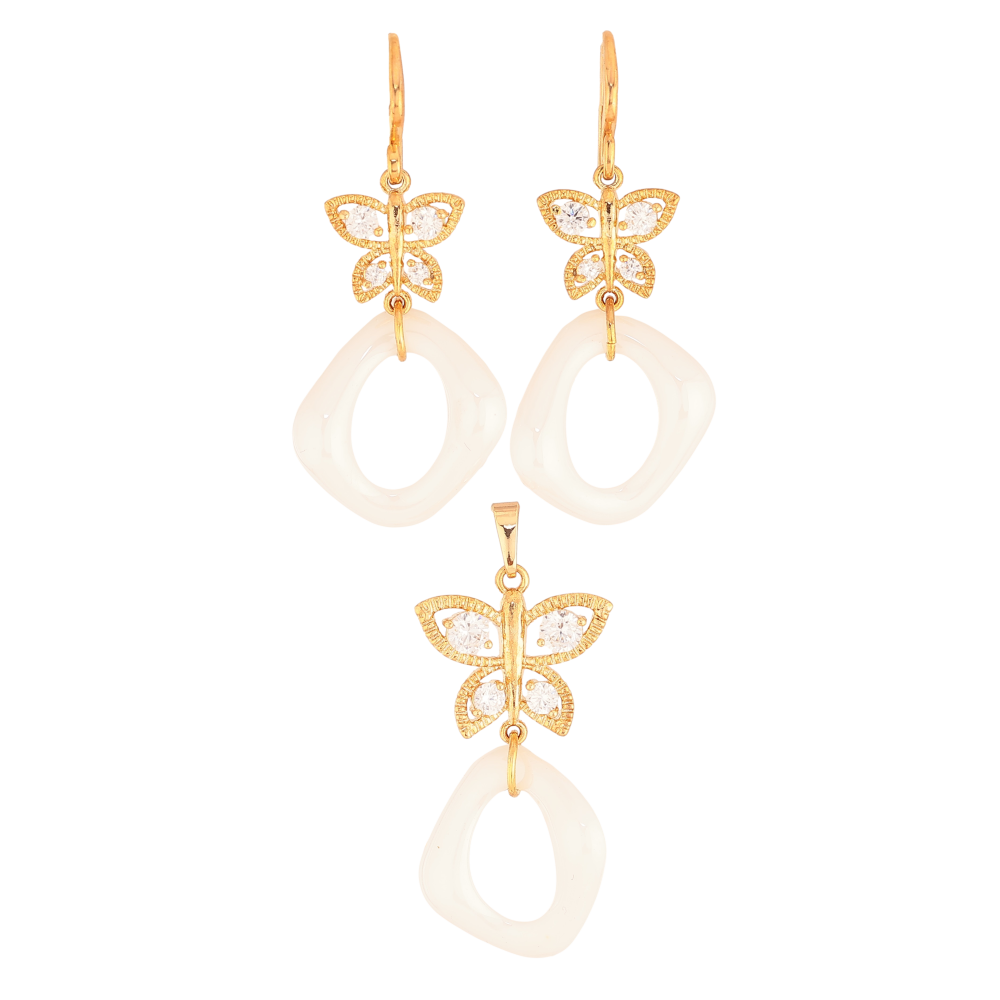 Набір Xuping колір Позолота 18K Сережки Кулон "Метелики з підвісками з білої кераміки"