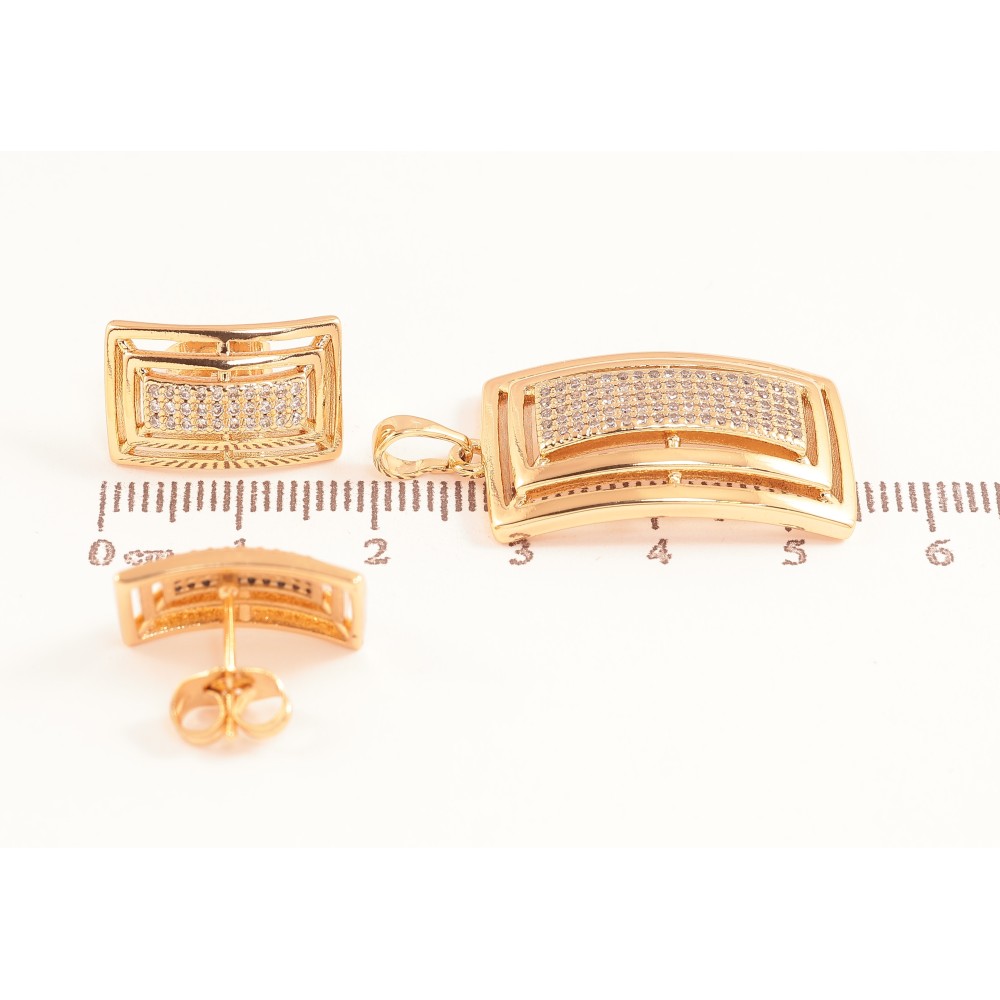 Набір Xuping колір Позолота 18K сережки кулон "Прямокутники з інкрустацією кристалами"