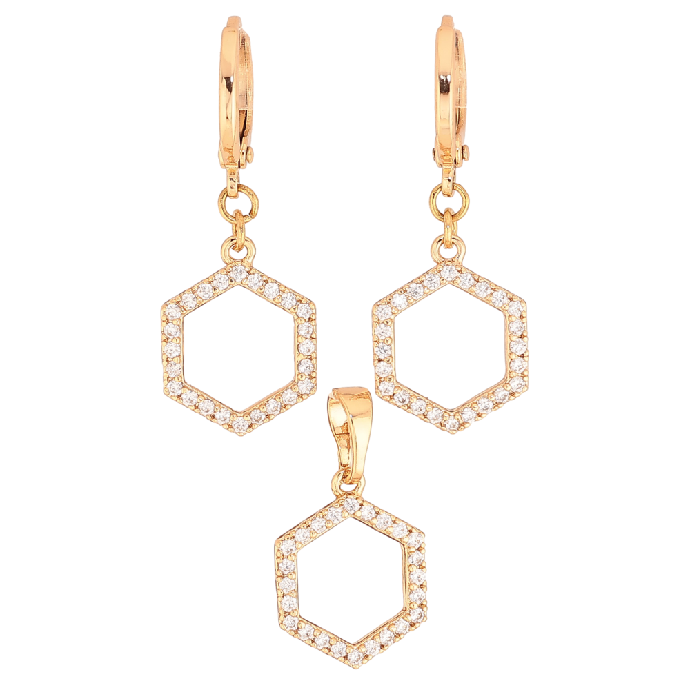 Набір Xuping колір Позолота 18K сережки кулон "Шестикутники з кристалами" ø 12мм