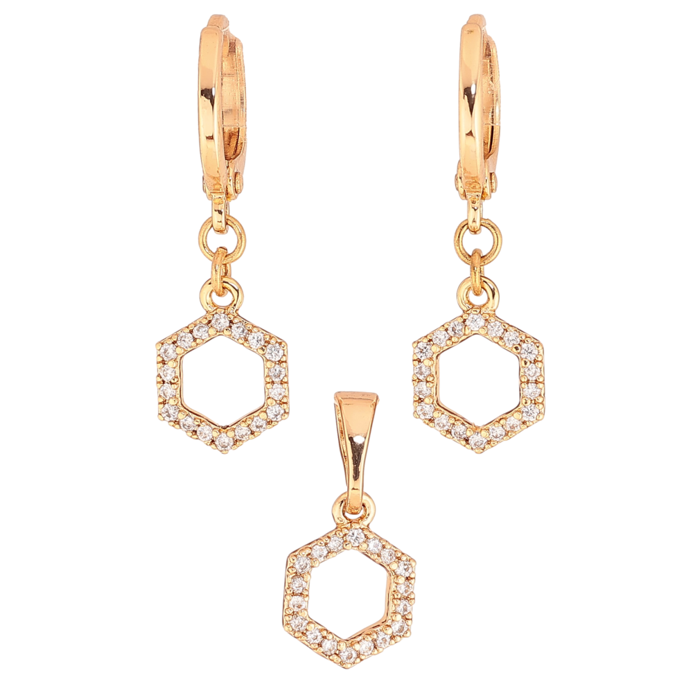 Набір Xuping колір Позолота 18K сережки кулон "Шестикутники з кристалами" ø 8мм