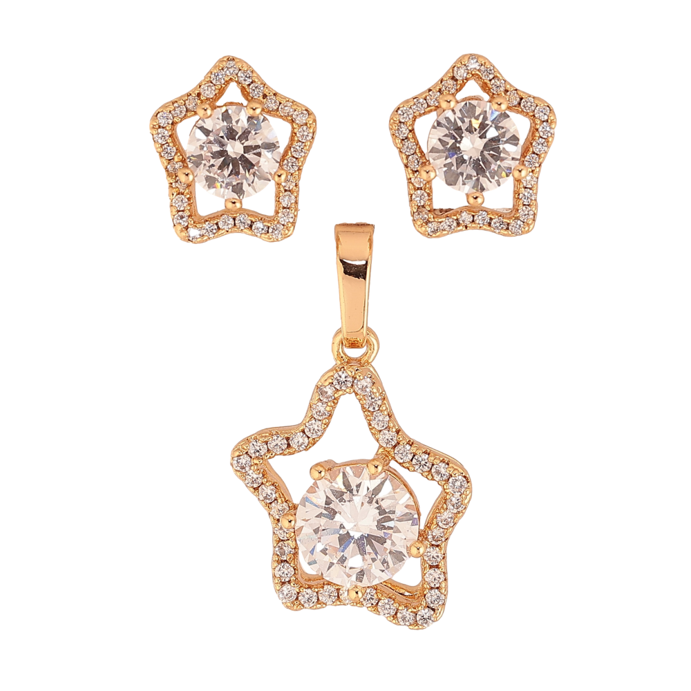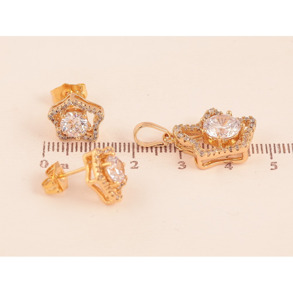Набір Xuping колір Позолота 18K Сережки Кулон "Зірочки з кристалами"