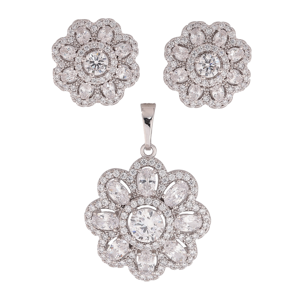 Набір Xuping колір Родій Сережки Кулон "Квіточки з кристалами"