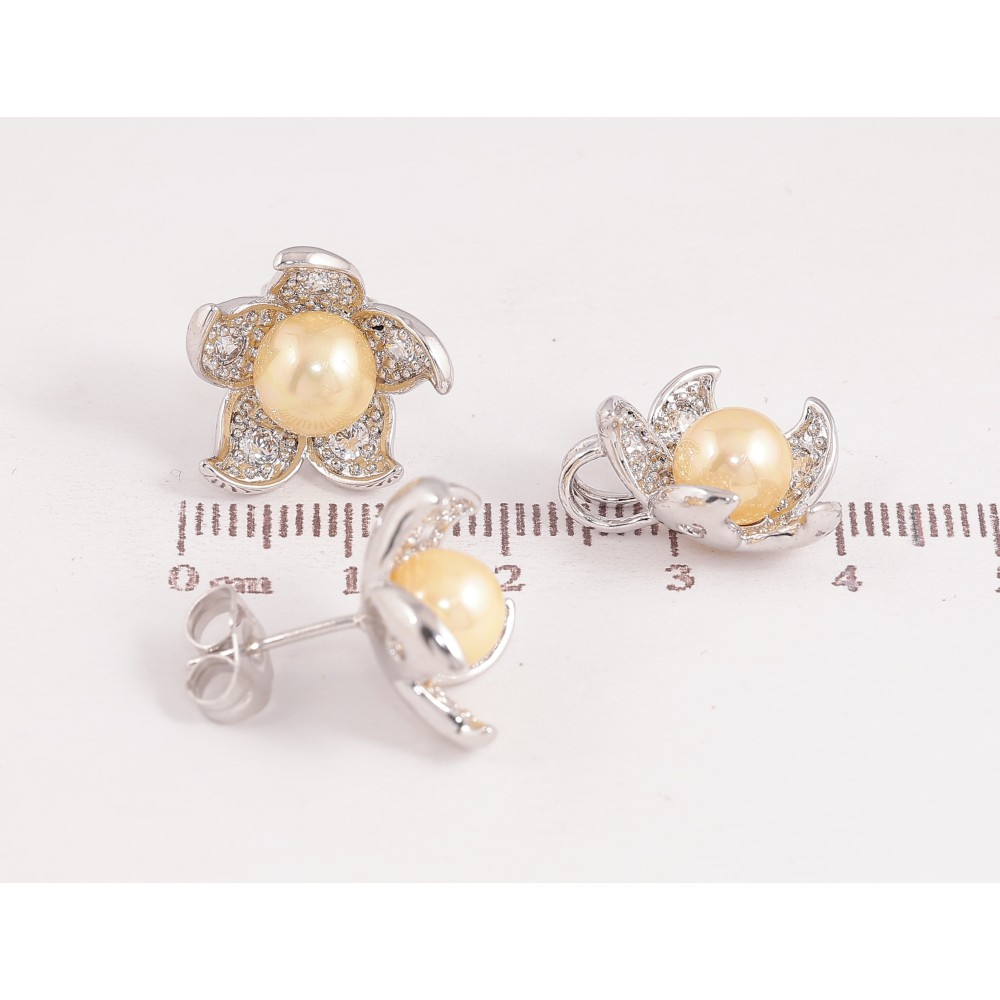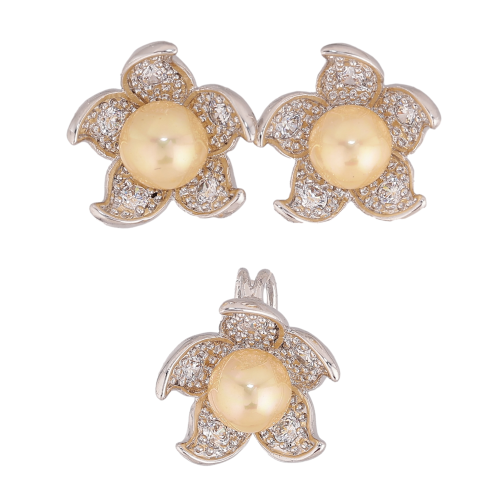 Набір Xuping колір Родій Сережки Кулон "Квіточки з жовтими перлинами"