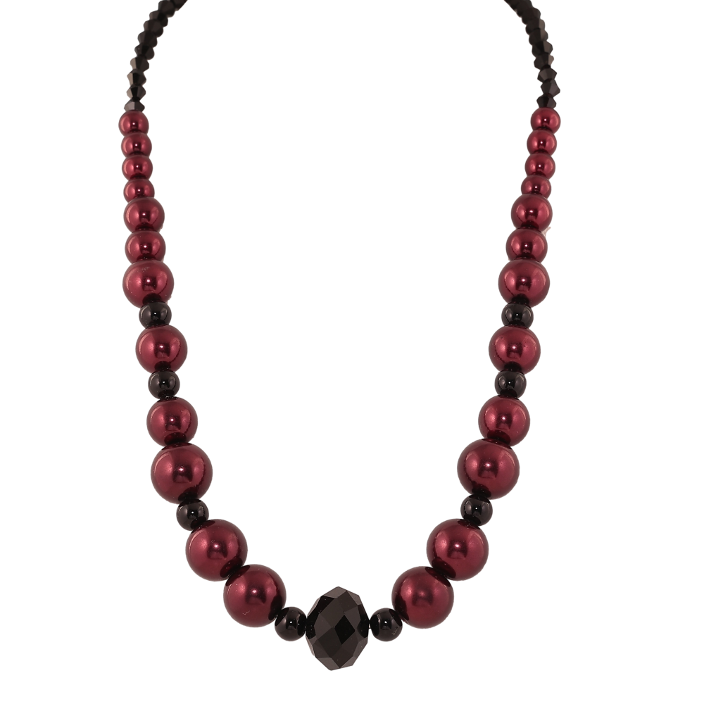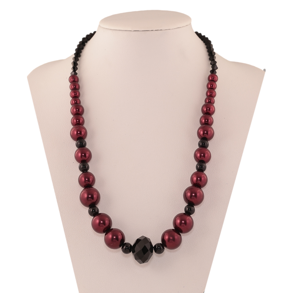 Намисто "Візерунок з чорно-бордових намистин" довжина 40-44см х 4-15мм
