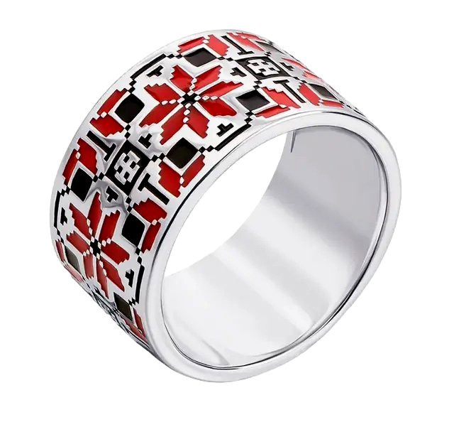 Вишивка сьогодні – це не лише патріотичний одяг для жінок та чоловіків, вона легко трансформувалася в прикраси, у тому числі і у каблучки, персні, печатки. На поверхні оригінально виглядають маки, калина, барвінок, чорнобривці, які асоціюються з Україною та національною символікою.