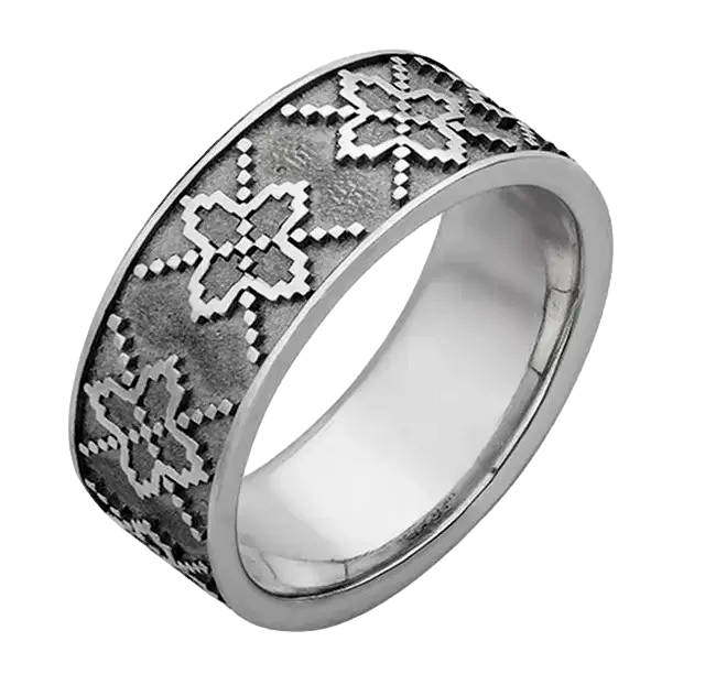 Символи-обереги в українських каблучках представлені в широкій різноманітності: це і вишивка, і рослинні, квіткові мотиви.